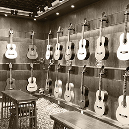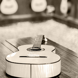 Diverse brace construction and matching wood top, back, and sides to create individual voice and sound. Design for professional musicians.