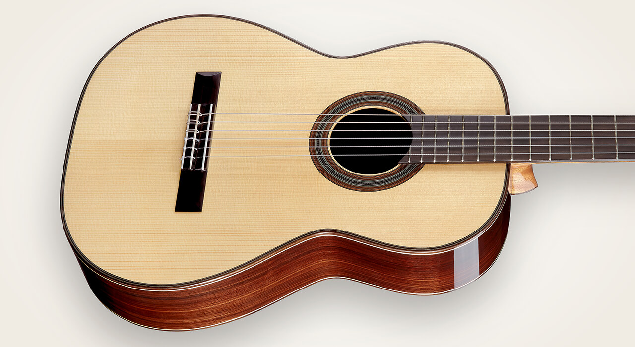 The Hauser body that we build is taken from a 1942. Hauser I, our guitars in this size are very beautiful to look at, with a more rounded body profile than the Spanish body. They have a more compressed sound than the larger model, however, volume and balance and tone are otherwise similar.