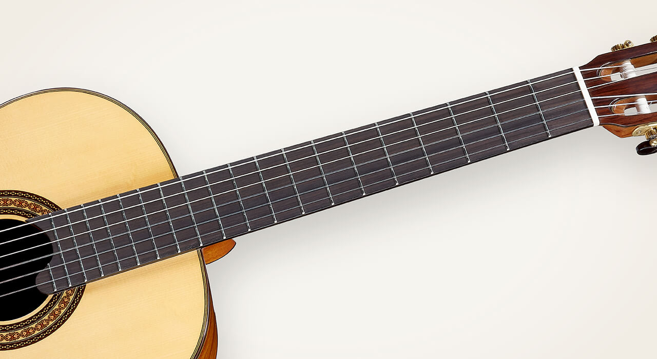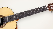 Montoya use traditional Spanish neck joint construction. The neck is one piece extends into the body and to the base of the neck, then the back and sides are jointed directly to the neck base block. It stabilize the neck, and improve the resonance.