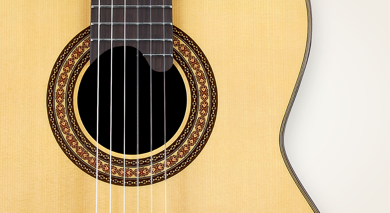 Mosaic design rosette is use, exquisite layered patterns, and colorful. They are design for the elegant classical guitars. Rosewood binding is use, and protect the body against impact.