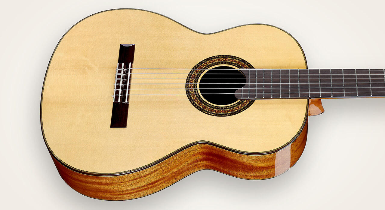 Swiss spruce has a whiter appearance, it is lighter and strong which allows for a responsive tone with nice complexity. This tonewood bestow extra headroom and overtone warmth for a robust mature sound.