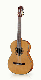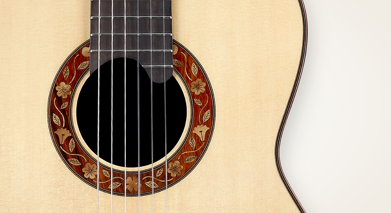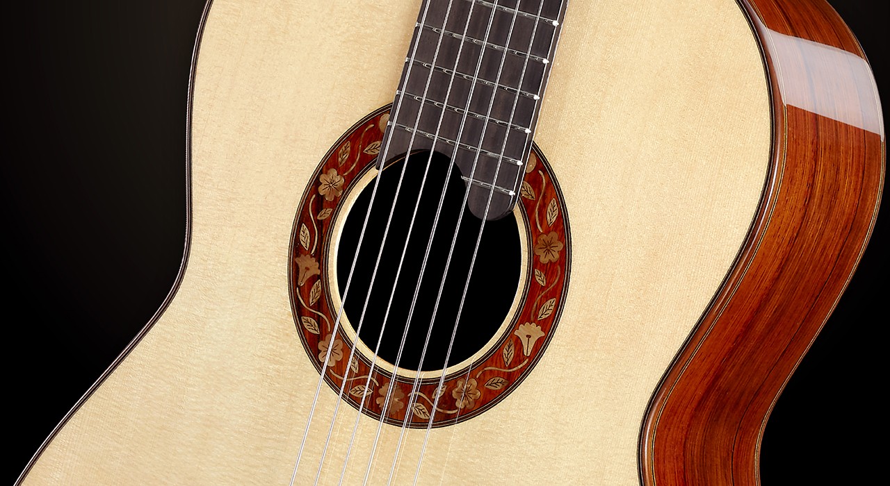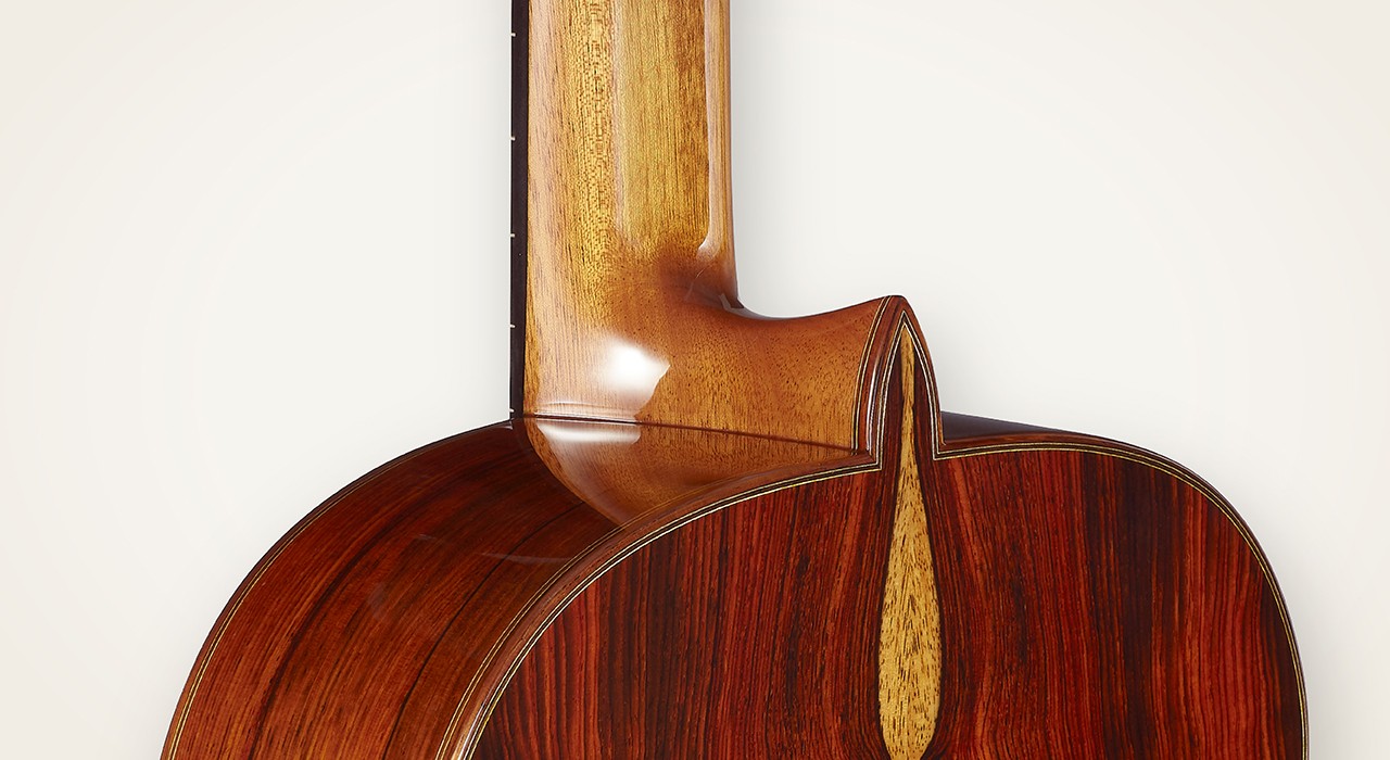 The Hauser body that we build is taken from a 1942. Hauser I, our guitars in this size are very beautiful to look at, with a more rounded body profile than the Spanish body. They have a more compressed sound than the larger model, however, volume and balance and tone are otherwise similar.
