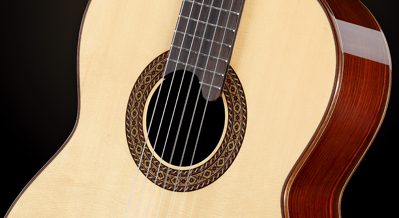 Mosaic design rosette is use, exquisite layered patterns, and colorful. They are design for the elegant classical guitars. Rosewood binding is use, and protect the body against impact.
